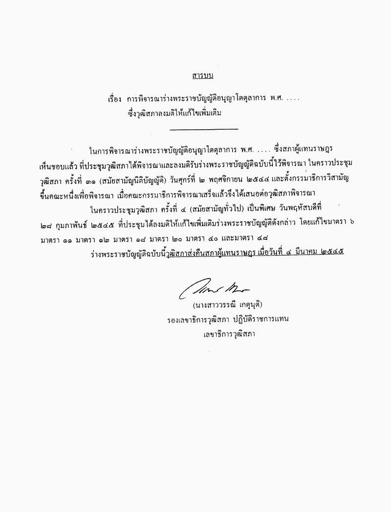 ชื่อเอกสาร :   พิจารณากรณีวุฒิสภาแก้ไขเพิ่มเติมร่างพระราชบัญญัติอนุญาโตตุลาการ พ.ศ..... ตามมาตรา 175 ของรัฐธรรมนูญแห่งราชอาณาจักรไทย
