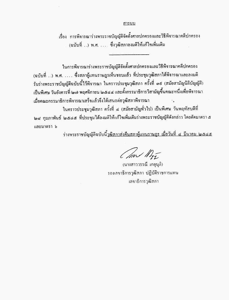 ชื่อเอกสาร :   พิจารณากรณีวุฒิสภาแก้ไขเพิ่มเติมร่างพระราชบัญญัติจัดตั้งศาลปกครองและวิธีพิจารณาคดีปกครอง(ฉบับที่..) พ.ศ. ..... ตามมาตรา 175 ของรัฐธรรมนูญแห่งราชอาณาจักรไทย