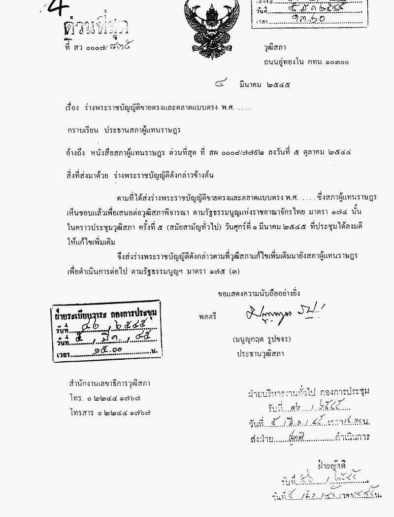 ชื่อเอกสาร :   พิจารณากรณีวุฒิสภาแก้ไขเพิ่มเติมร่างพระราชบัญญัติขายตรงและตลาดแบบตรง พ.ศ..... ตามมาตรา 175 ของรัฐธรรมนูญ แห่งราชอาณาจักรไทย
