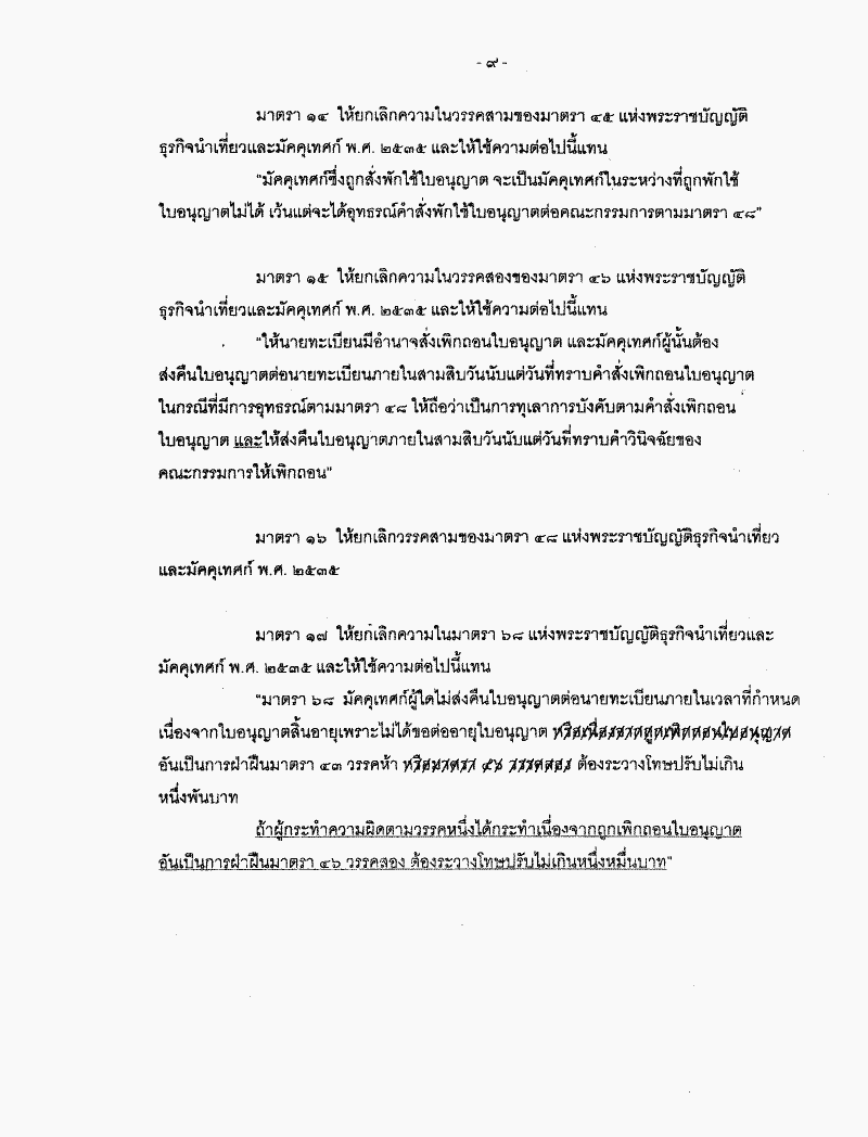 • ร่างพระราชบัญญัติธุรกิจนำเที่ยวและมัคคุเทศก์ (ฉบับที่..) พ.ศ.....