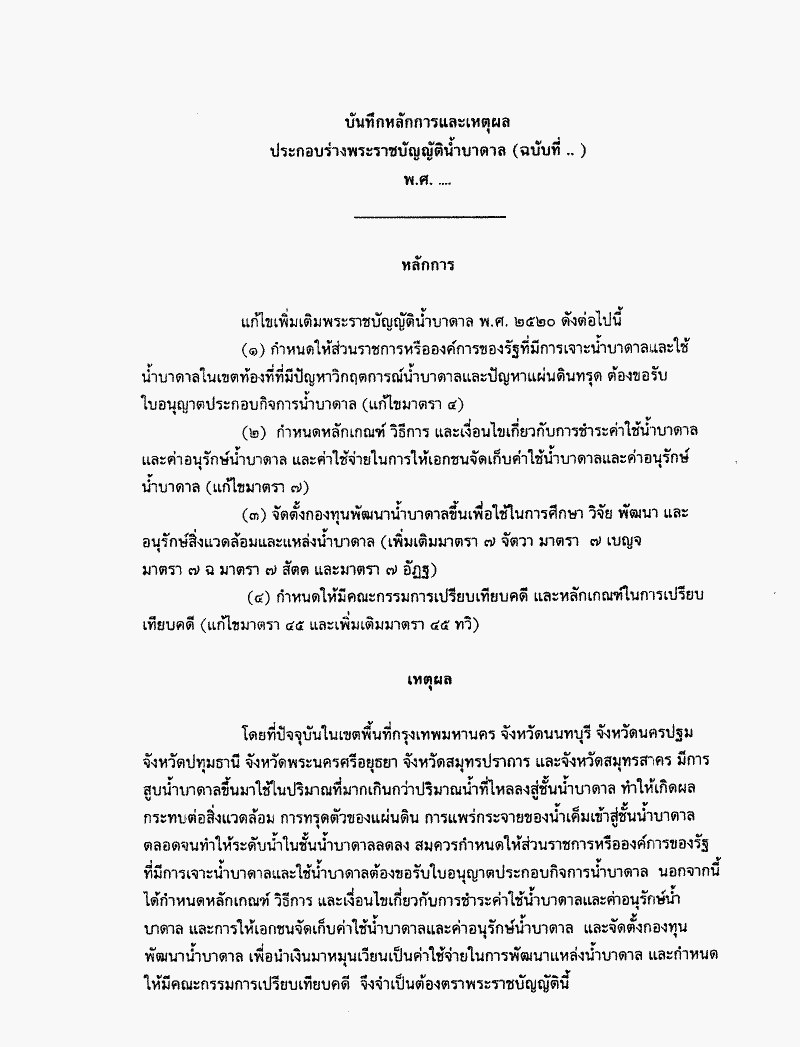 ชื่อเอกสาร :   ร่างพระราชบัญญัติน้ำบาดาล (ฉบับที่..) พ.ศ. ....