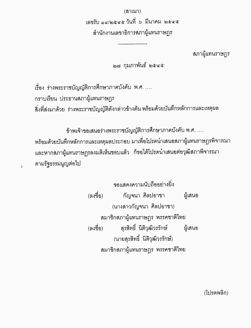 • ร่างพระราชบัญญัติการศึกษาภาคบังคับ พ.ศ. ....
