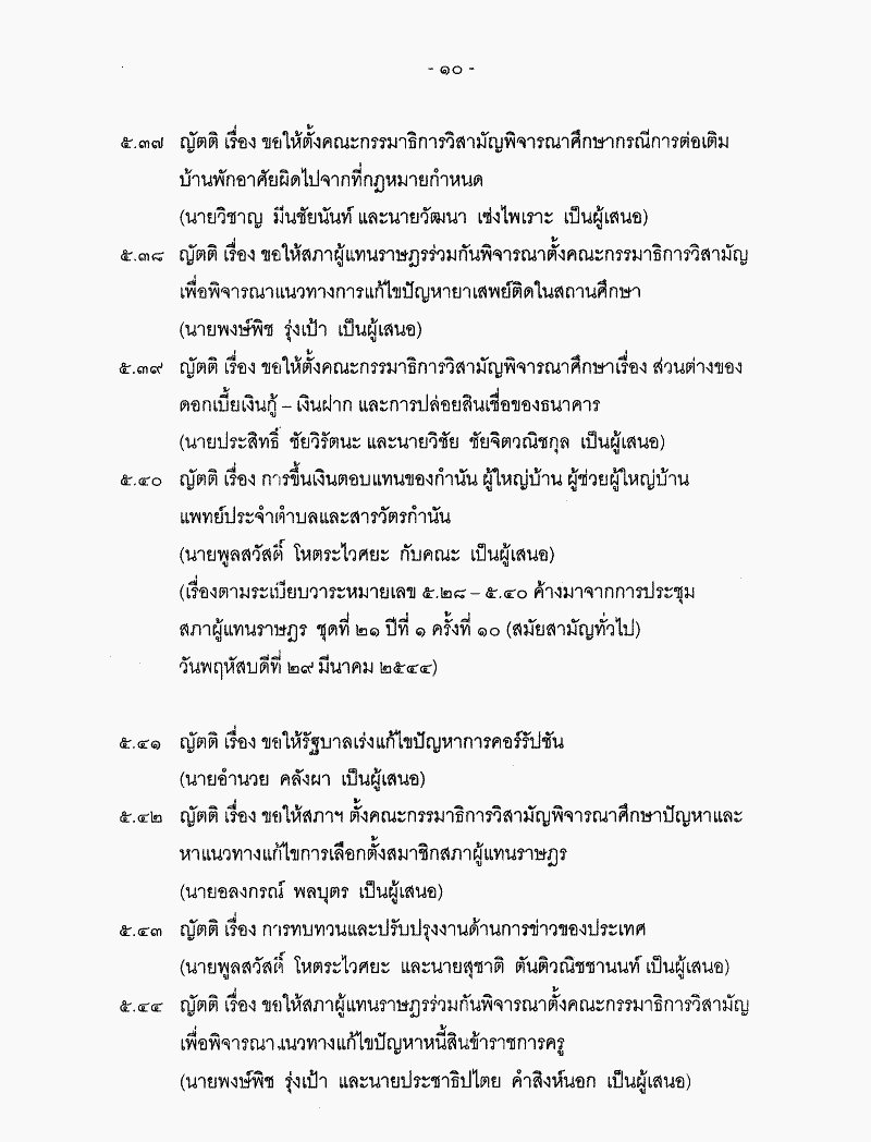 • ระเบียบวาระการชุมสภาผู้แทนราษฎร ชุดที่ 21 ปีที่ 2 ครั้งที่ 11 (สมัยสามัญทั่วไป) วันพฤหัสบดีที่ 14 มีนาคม 2545
