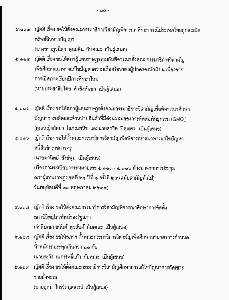 • ระเบียบวาระการชุมสภาผู้แทนราษฎร ชุดที่ 21 ปีที่ 2 ครั้งที่ 11 (สมัยสามัญทั่วไป) วันพฤหัสบดีที่ 14 มีนาคม 2545