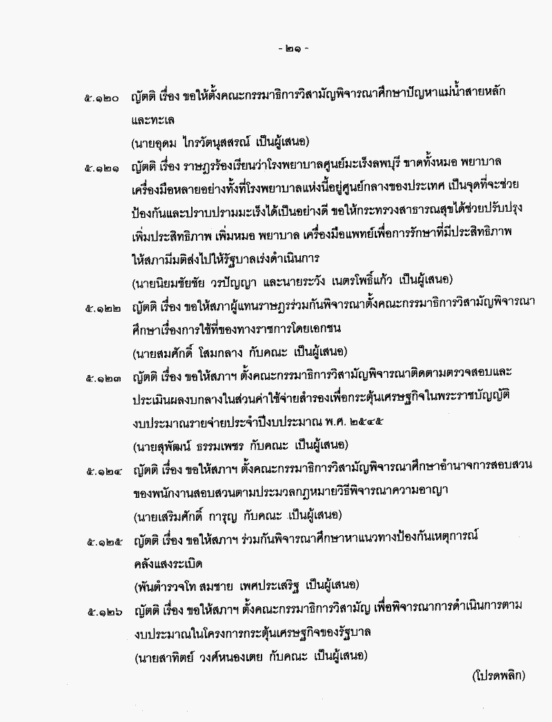 • ระเบียบวาระการชุมสภาผู้แทนราษฎร ชุดที่ 21 ปีที่ 2 ครั้งที่ 11 (สมัยสามัญทั่วไป) วันพฤหัสบดีที่ 14 มีนาคม 2545