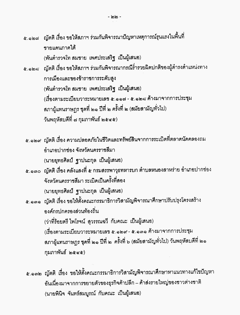 • ระเบียบวาระการชุมสภาผู้แทนราษฎร ชุดที่ 21 ปีที่ 2 ครั้งที่ 11 (สมัยสามัญทั่วไป) วันพฤหัสบดีที่ 14 มีนาคม 2545