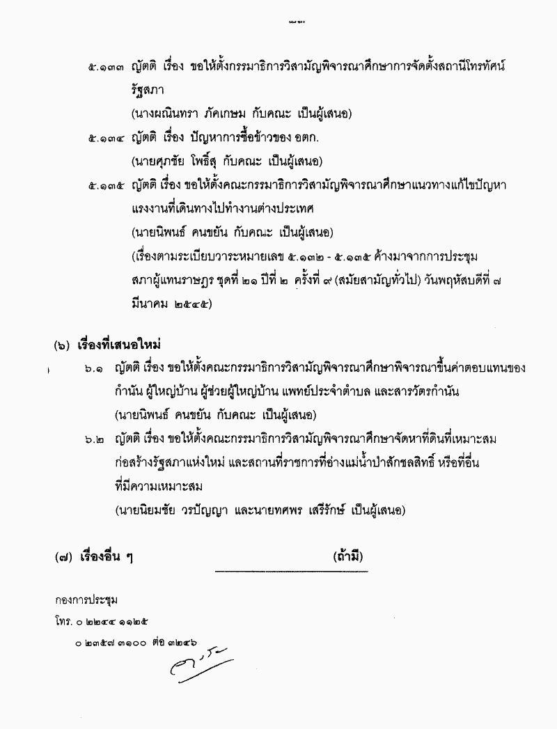 • ระเบียบวาระการชุมสภาผู้แทนราษฎร ชุดที่ 21 ปีที่ 2 ครั้งที่ 11 (สมัยสามัญทั่วไป) วันพฤหัสบดีที่ 14 มีนาคม 2545