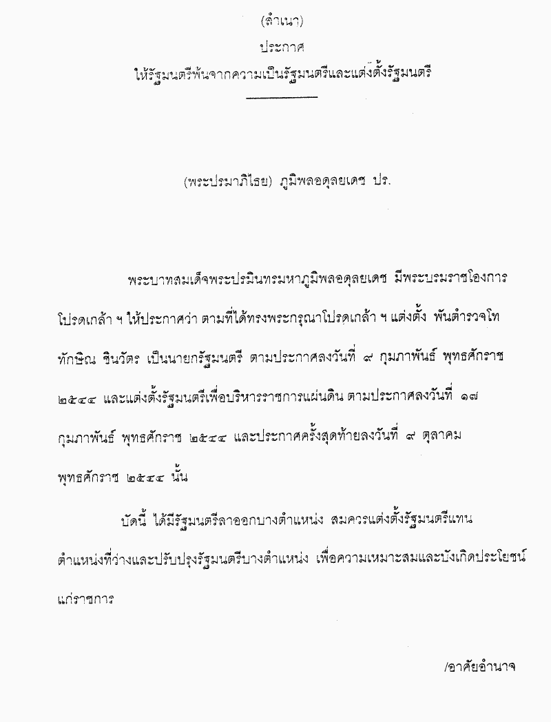 ชื่อเอกสาร :   ประกาศให้รัฐมนตรีพ้นจากความเป็นรัฐมนตรีและแต่งตั้งรัฐมนตรี
