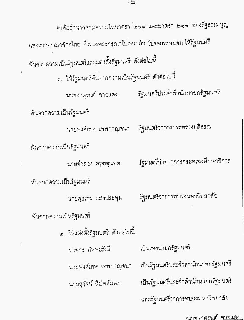 • ประกาศให้รัฐมนตรีพ้นจากความเป็นรัฐมนตรีและแต่งตั้งรัฐมนตรี