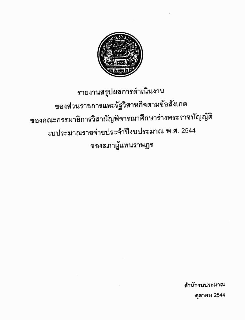 • ข้อสังเกตของคณะกรรมาธิการวิสามัญพิจารณาร่างพระราชบัญญัติงบประมาณรายจ่ายประจำปี งบประมาณ พ.ศ. 2544