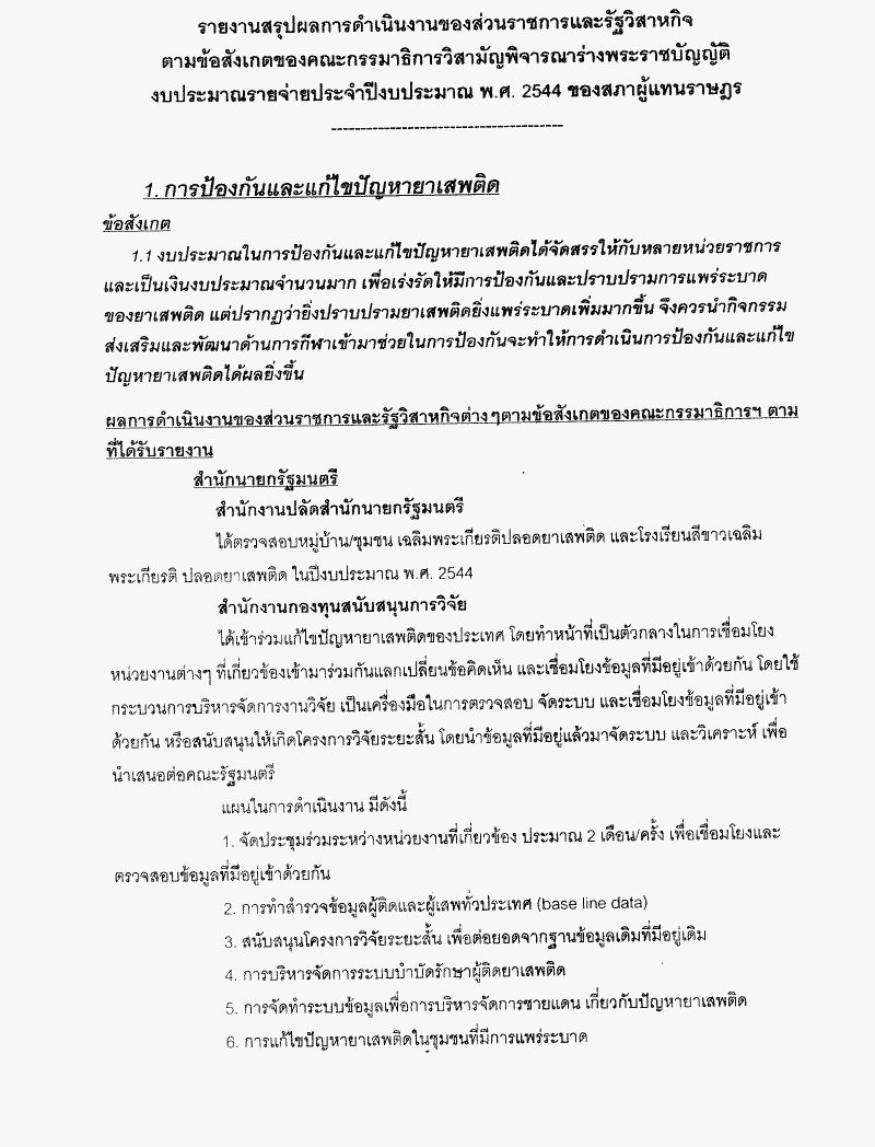 • ข้อสังเกตของคณะกรรมาธิการวิสามัญพิจารณาร่างพระราชบัญญัติงบประมาณรายจ่ายประจำปี งบประมาณ พ.ศ. 2544