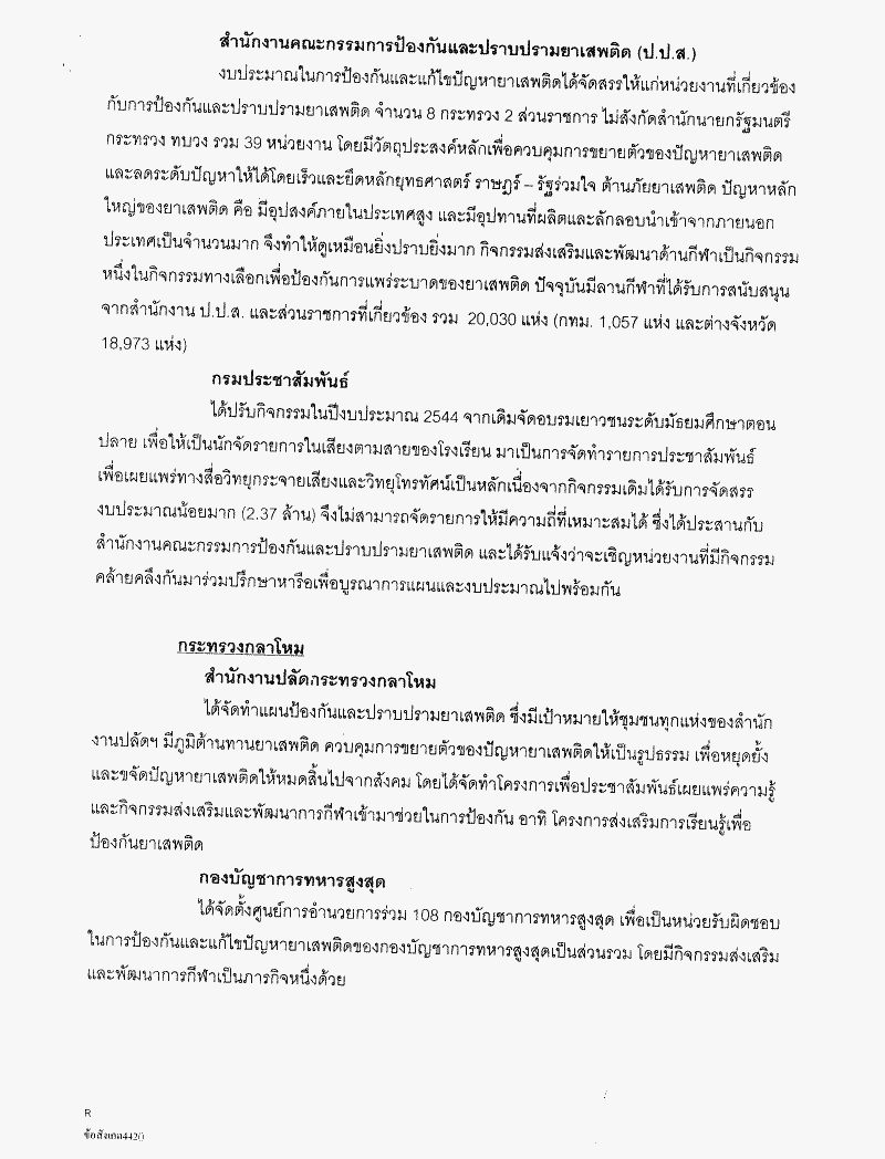 • ข้อสังเกตของคณะกรรมาธิการวิสามัญพิจารณาร่างพระราชบัญญัติงบประมาณรายจ่ายประจำปี งบประมาณ พ.ศ. 2544