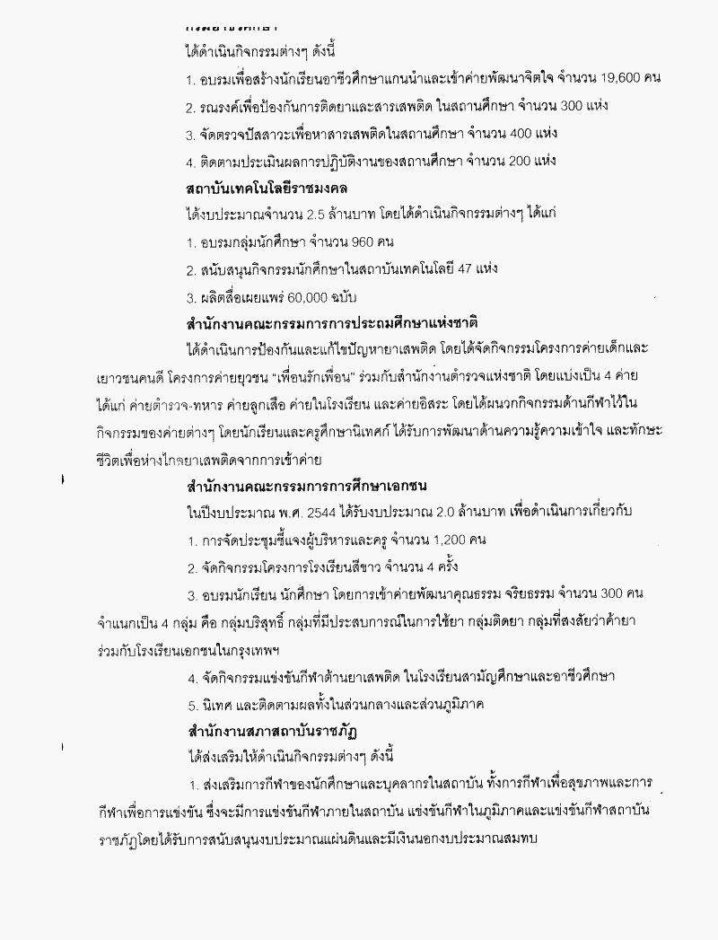 • ข้อสังเกตของคณะกรรมาธิการวิสามัญพิจารณาร่างพระราชบัญญัติงบประมาณรายจ่ายประจำปี งบประมาณ พ.ศ. 2544
