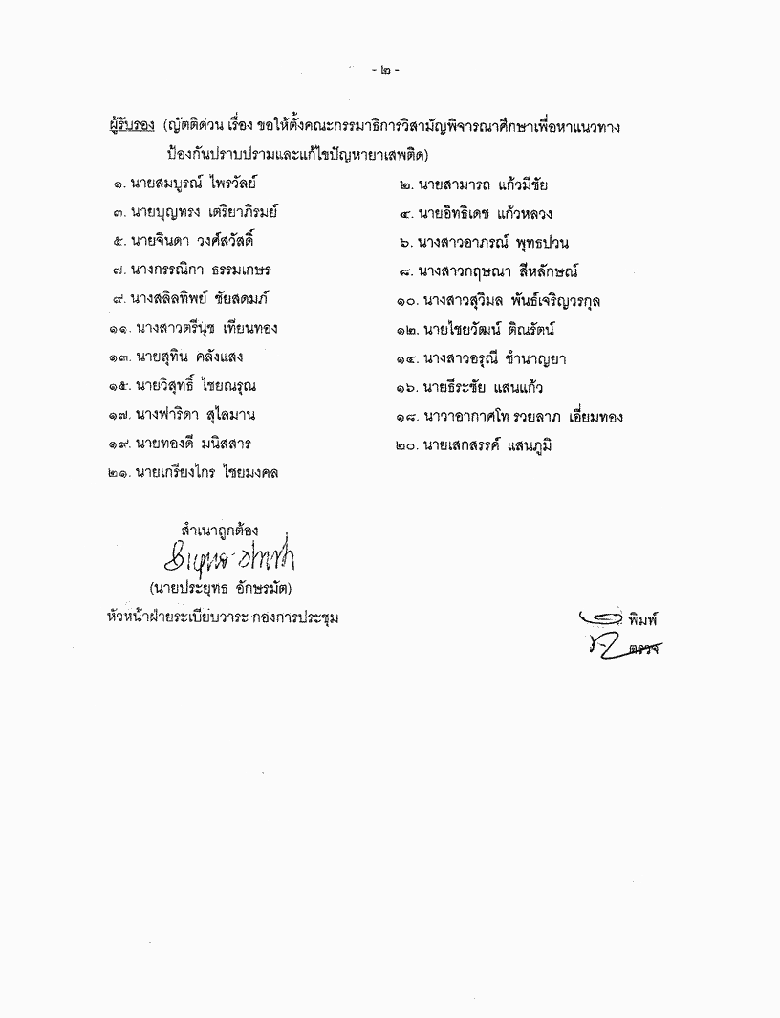 ชื่อเอกสาร :   ๖.๒๐ ญัตติ เรื่องขอให้สภาฯ ตั้งคณะกรรมาธิการวิสามัญเพื่อพิจารณาศึกษาเพื่อหาแนวทางป้องกันปราบปรามและแก้ไขปัญหายาเสพติด (นางสาวชรินรัตน์ พุทธปวน กับคณะ เป็นผู้เสนอ)