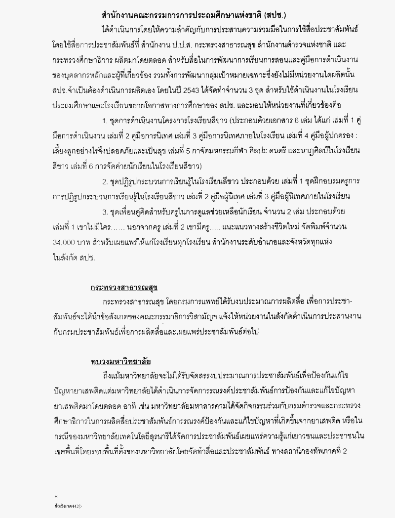 • ข้อสังเกตของคณะกรรมาธิการวิสามัญพิจารณาร่างพระราชบัญญัติงบประมาณรายจ่ายประจำปี งบประมาณ พ.ศ. 2544