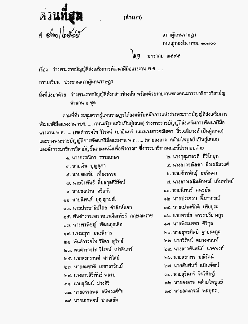 ร่างพระราชบัญญัติส่งเสริมการพัฒนาฝีมือแรงงาน พ.ศ. .... |
