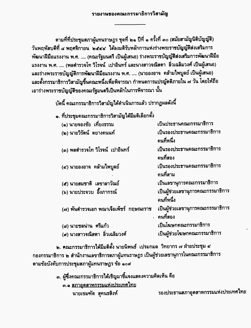 ชื่อเอกสาร :   ร่างพระราชบัญญัติส่งเสริมการพัฒนาฝีมือแรงงาน พ.ศ. .... ซึ่งคณะกรรมาธิการวิสามัญพิจารณาเสร็จแล้ว