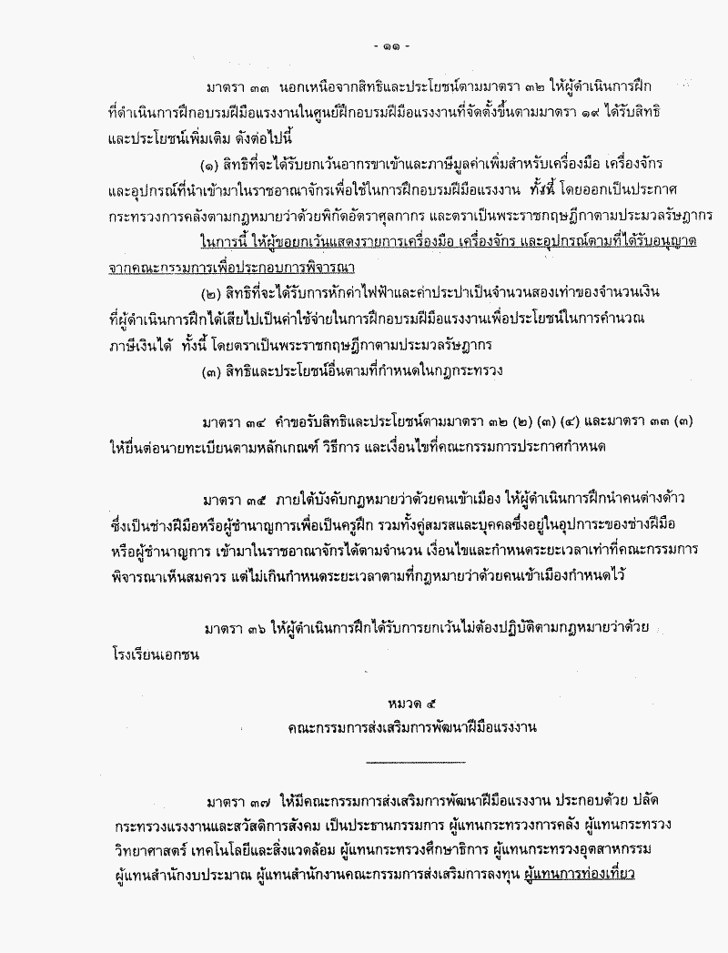 • ร่างพระราชบัญญัติส่งเสริมการพัฒนาฝีมือแรงงาน พ.ศ. ....