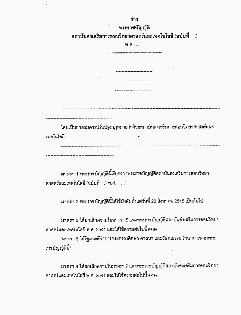 • ร่างพระราชบัญญัติสถาบันส่งเสริมการสอนวิทยาศาสตร์และเทคโนโลยี (ฉบับที่ ..) พ.ศ. ....