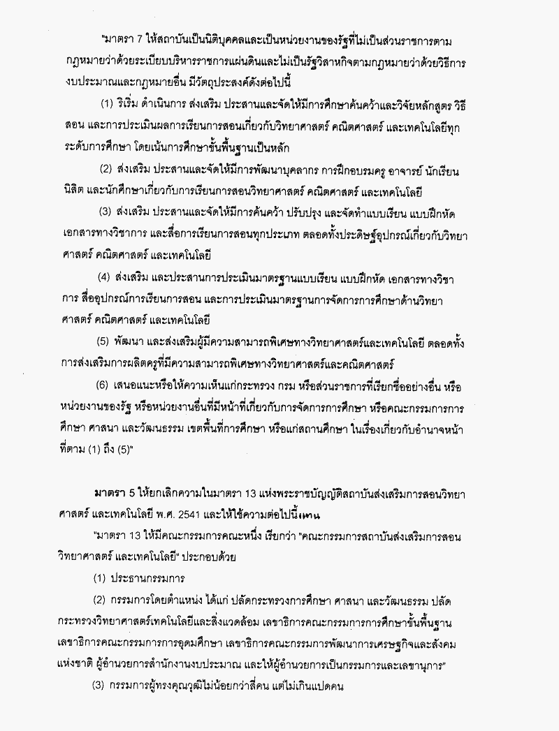 • ร่างพระราชบัญญัติสถาบันส่งเสริมการสอนวิทยาศาสตร์และเทคโนโลยี (ฉบับที่ ..) พ.ศ. ....
