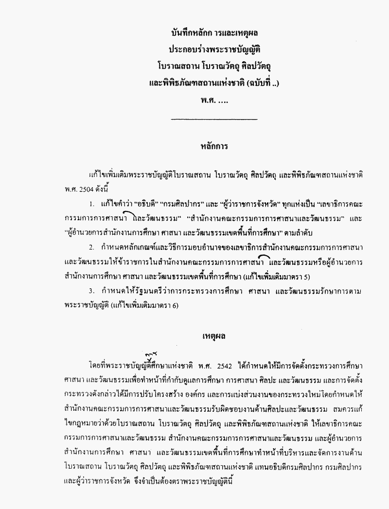 ร่างพระราชบัญญัติโบราณสถานโบราณวัตถุ ศิลปวัตถุ และพิพิธภัณฑสถานแห่งชาติ (ฉบับที่ ..) พ.ศ. .... |