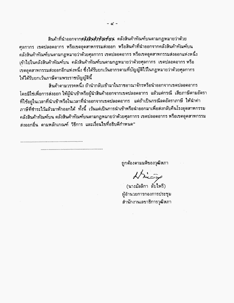 • เรื่อง ร่างพระราชบัญญัติภาษีสรรพสามิต (ฉบับที่ ..) พ.ศ. .... (การจัดตั้งเขตปลอดอากร) และร่างพระราชบัญญัติส่งเสริมการลงทุน (ฉบับที่ ..) พ.ศ. ....