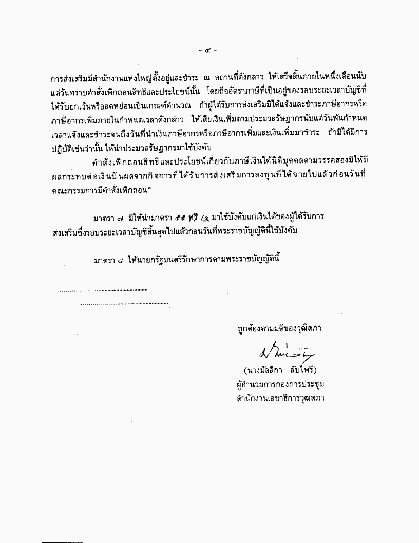 • การพิจารณาร่างพระราชบัญญัติส่งเสริมการลงทุน (ฉบับที่ ..) พ.ศ. .... ซึ่งวุฒิสภาลงมติให้แก้ไขเพิ่มเติม