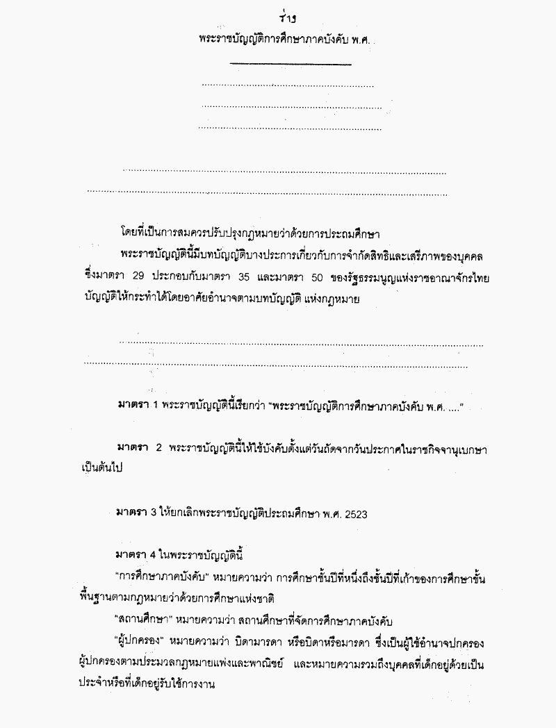 • ร่างพระราชบัญญัติการศึกษาภาคบังคับ พ.ศ. ....