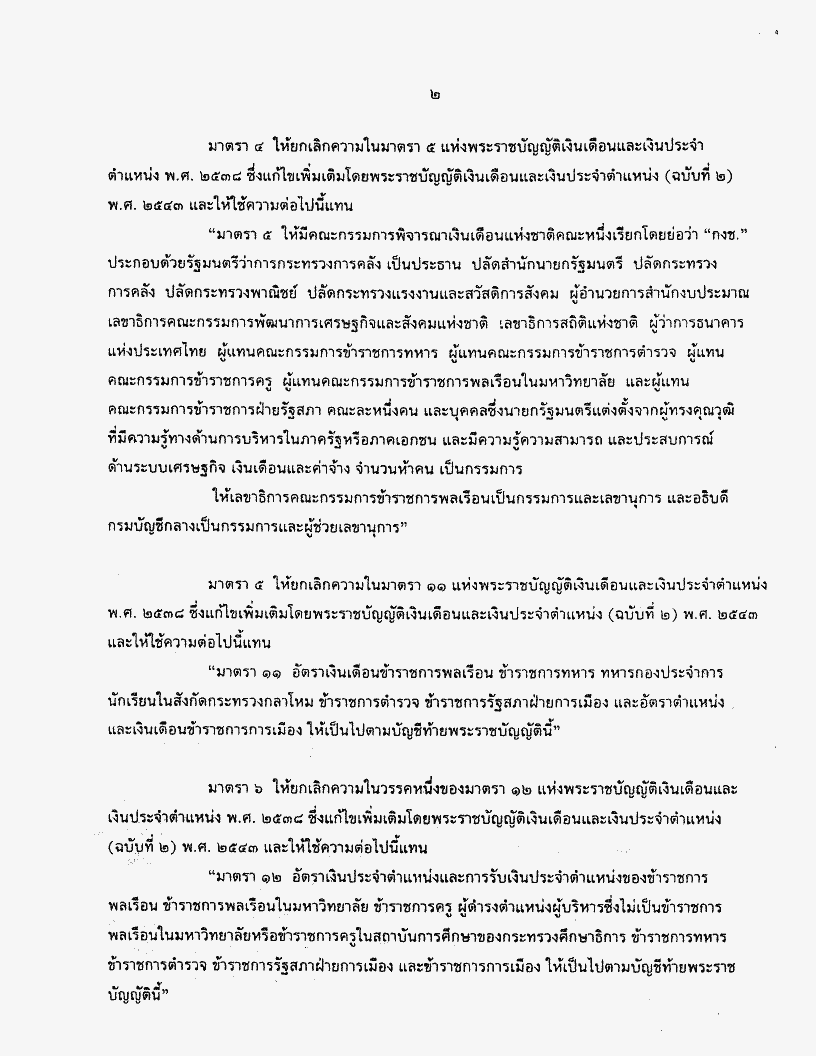 • ร่างพระราชบัญญัติเงินเดือนและเงินประจำตำแหน่ง (ฉบับที่ ..) พ.ศ. .... (คณะรัฐมนตรี เป็นผู้เสนอ)