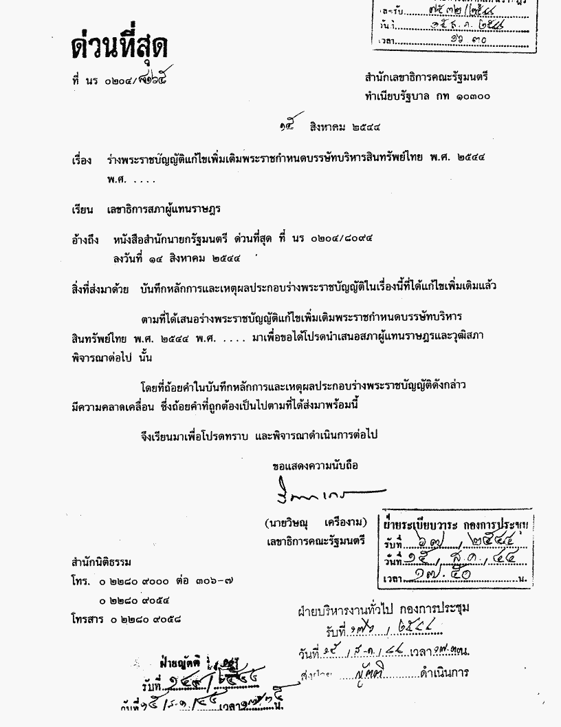 ชื่อเอกสาร :   ร่างพระราชบัญญัติแก้ไขเพิ่มเติมพระราชกำหนดบรรษัทบริหารสินทรัพย์ไทย พ.ศ. 2544 (คณะรฐัมนตรี เป็นผู้เสนอ)