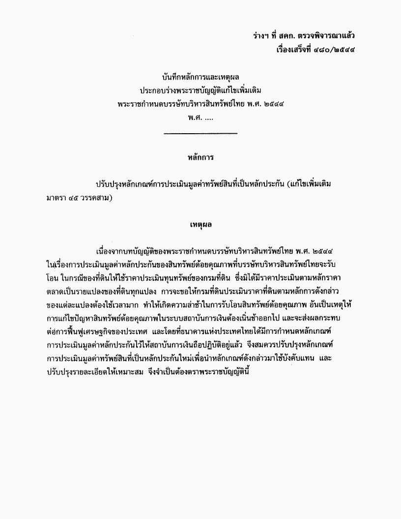 ชื่อเอกสาร :   ร่างพระราชบัญญัติแก้ไขเพิ่มเติมพระราชกำหนดบรรษัทบริหารสินทรัพย์ไทย พ.ศ. 2544 (คณะรฐัมนตรี เป็นผู้เสนอ)
