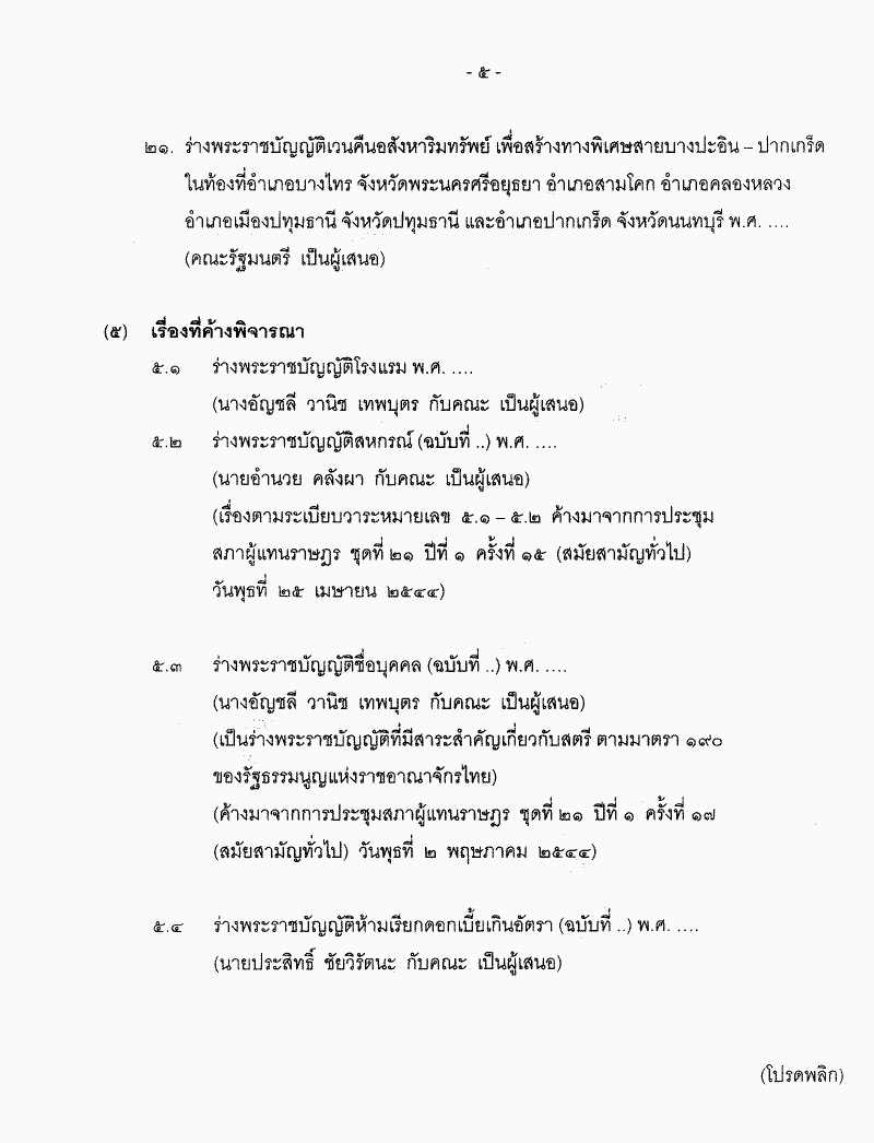 • ระเบียบวาระการประชุมสภาผู้แทนราษฎร ชุดที่ 21 ปีที่ 2 ครั้งที่ 1 (สมัยสามัญทั่วไป) วันพุธที 6 กุมภาพันธ์ 2545