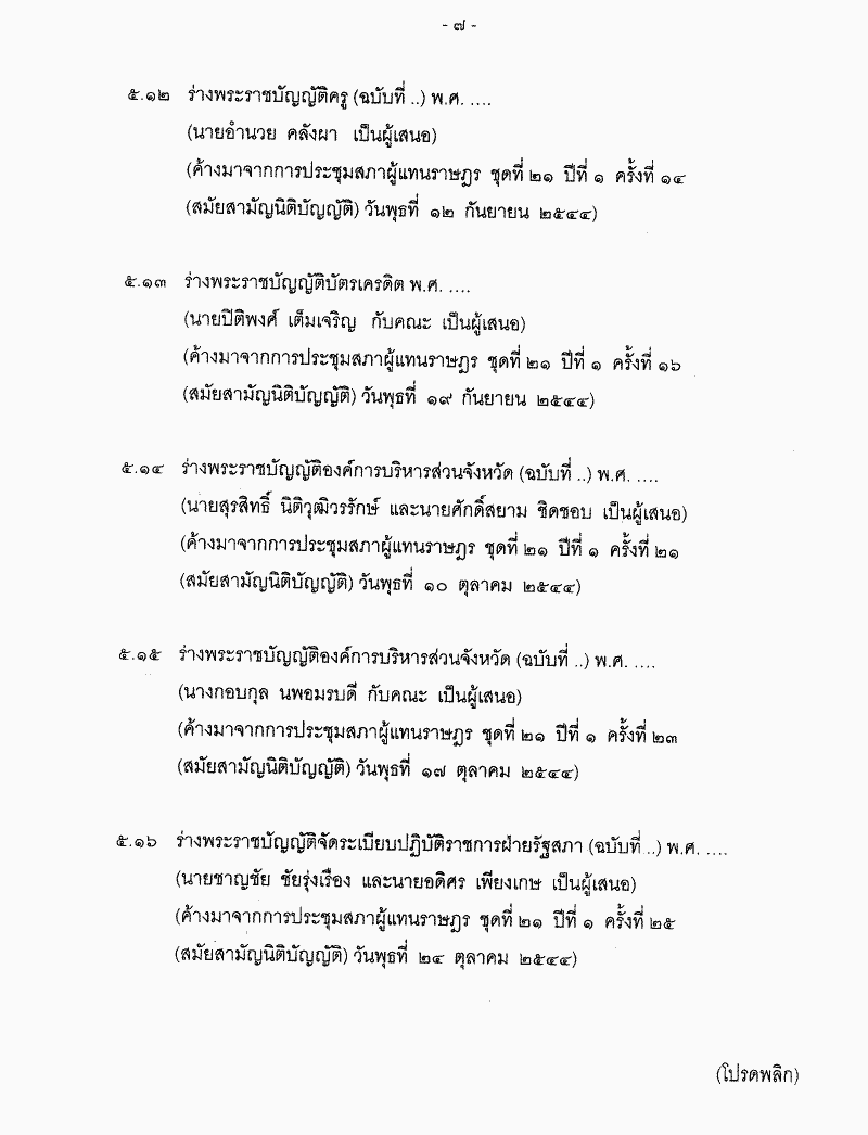 • ระเบียบวาระการประชุมสภาผู้แทนราษฎร ชุดที่ 21 ปีที่ 2 ครั้งที่ 1 (สมัยสามัญทั่วไป) วันพุธที 6 กุมภาพันธ์ 2545