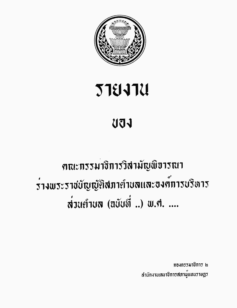 ชื่อเอกสาร :   ร่างพระราชบัญญัติสภาตำบลและองค์การบริหารส่วนตำบล (ฉบับที่ ..) พ.ศ. .... ซึ่งคณะกรรมาธิการวิสามัญพิจารณาเสร็จแล้ว