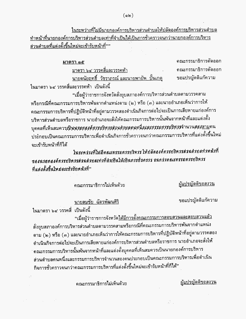 ชื่อเอกสาร :   ร่างพระราชบัญญัติสภาตำบลและองค์การบริหารส่วนตำบล (ฉบับที่ ..) พ.ศ. .... ซึ่งคณะกรรมาธิการวิสามัญพิจารณาเสร็จแล้ว
