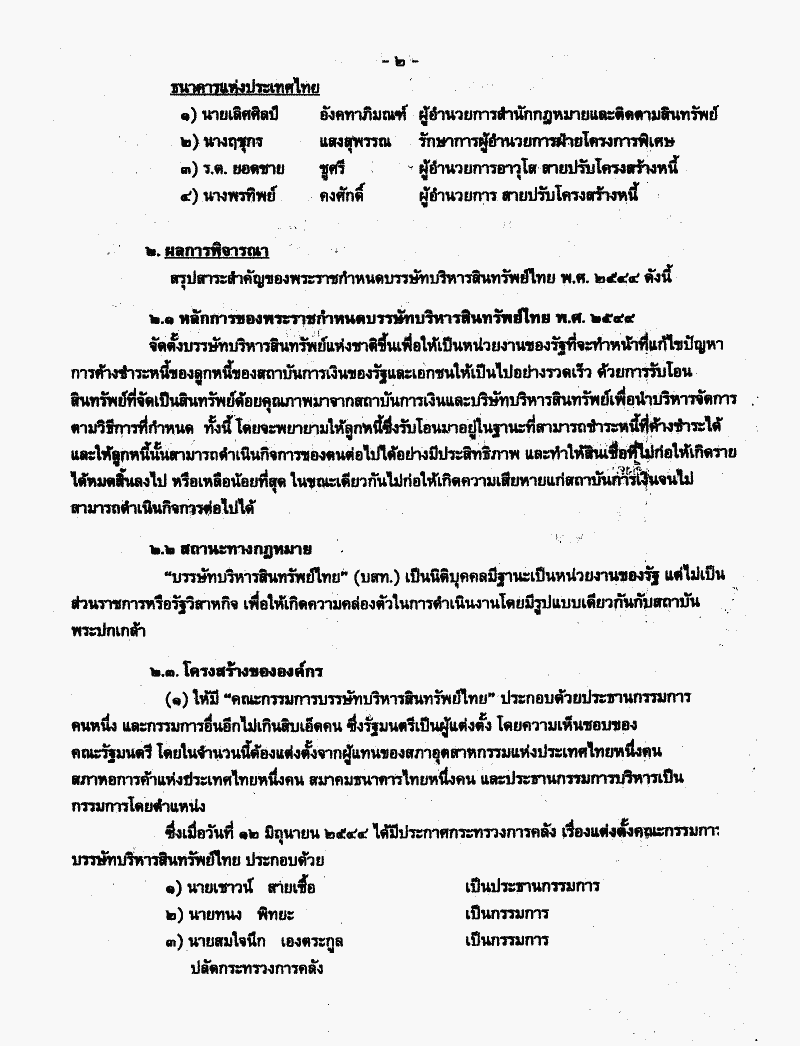 ชื่อเอกสาร :   รายงานผลการพิจารณาศึกษา เรื่อง การจัดตั้งบริษัทบริหารสินทรัพย์ไทย (บสท.) ซึ่งคณะกรรมาธิการการพัฒนาเศรษฐกิจพิจารณาเสร็จแล้ว
