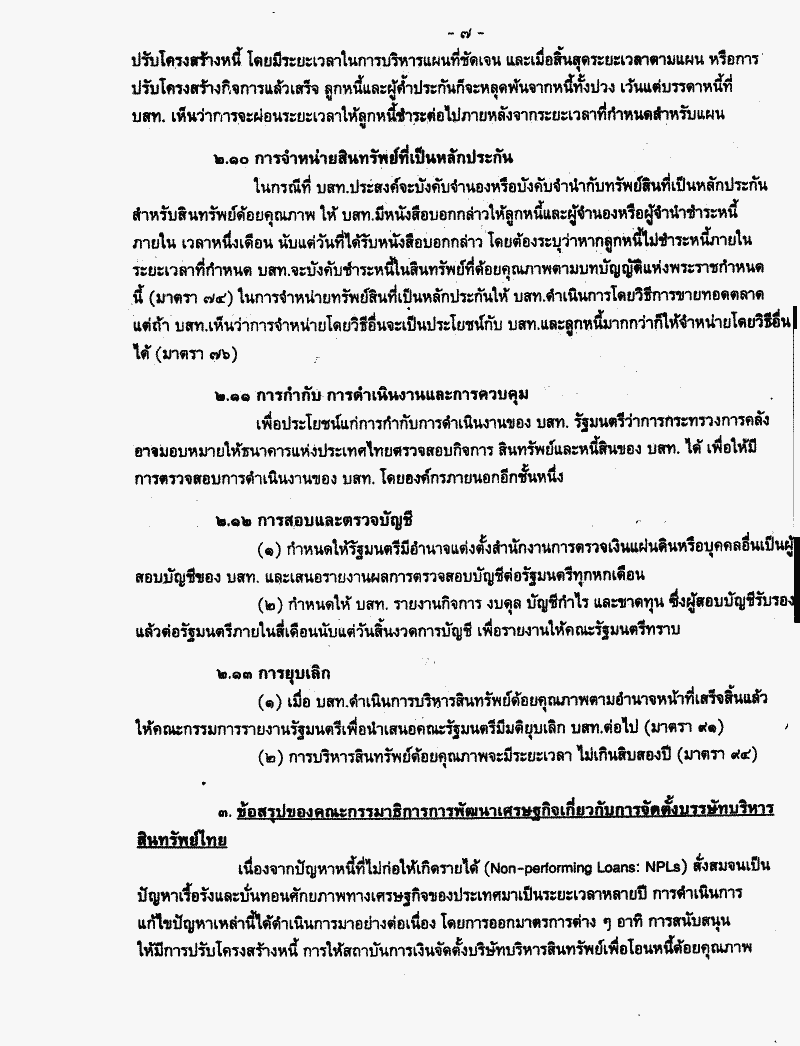 • รายงานผลการพิจารณาศึกษา เรื่อง การจัดตั้งบริษัทบริหารสินทรัพย์ไทย (บสท.) ซึ่งคณะกรรมาธิการการพัฒนาเศรษฐกิจพิจารณาเสร็จแล้ว