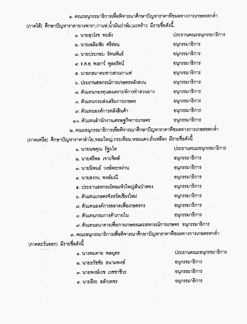 • รายงานผลการพิจารณาศึกษาของคณะกรรมาธิการวิสามัญเพื่อพิจารณาปัญหาราคาพืชผลทางการเกษตรตกต่ำ