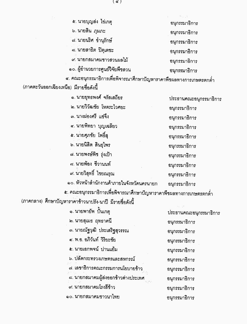 • รายงานผลการพิจารณาศึกษาของคณะกรรมาธิการวิสามัญเพื่อพิจารณาปัญหาราคาพืชผลทางการเกษตรตกต่ำ