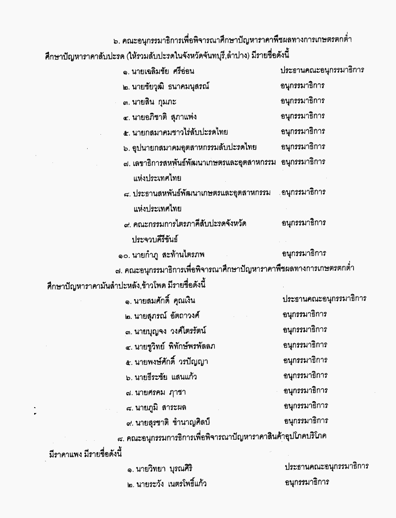 • รายงานผลการพิจารณาศึกษาของคณะกรรมาธิการวิสามัญเพื่อพิจารณาปัญหาราคาพืชผลทางการเกษตรตกต่ำ