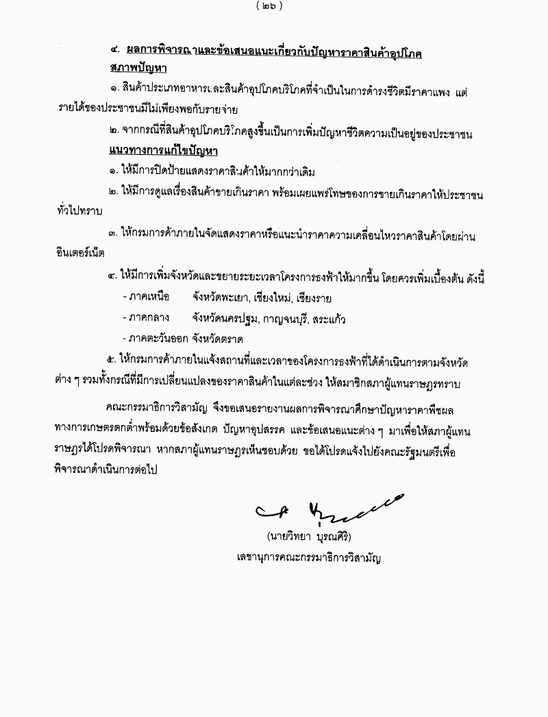 • รายงานผลการพิจารณาศึกษาของคณะกรรมาธิการวิสามัญเพื่อพิจารณาปัญหาราคาพืชผลทางการเกษตรตกต่ำ