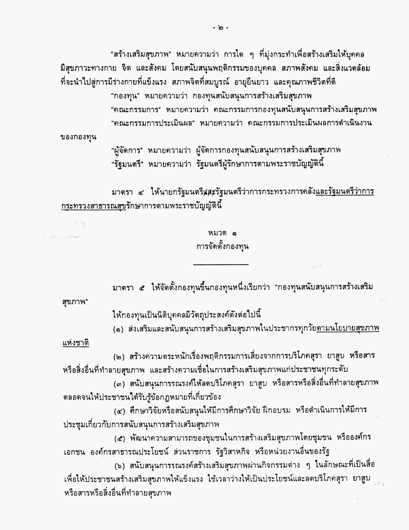 • ร่างพระราชบัญญัติกองทุนสนับสนุนการสร้างเสริมสุขภาพ พ.ศ. .... และ ร่างพระราชบัญญัติค่าตอบแทนผู้เสียหาย และค่าทดแทนและค่าใช้จ่ายแก่จำเลยในคดีอาญา พ.ศ. ....
