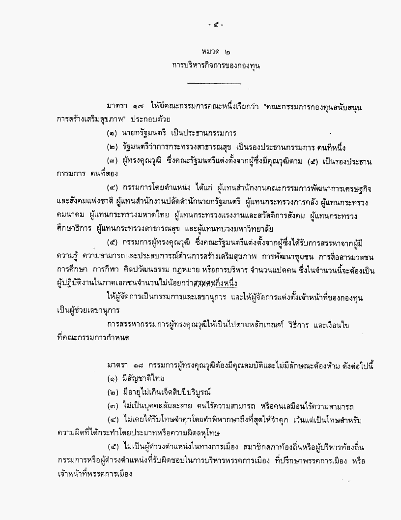 • ร่างพระราชบัญญัติกองทุนสนับสนุนการสร้างเสริมสุขภาพ พ.ศ. .... และ ร่างพระราชบัญญัติค่าตอบแทนผู้เสียหาย และค่าทดแทนและค่าใช้จ่ายแก่จำเลยในคดีอาญา พ.ศ. ....