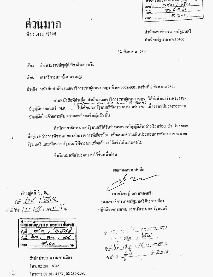 รับทราบเรื่องนายกรัฐมนตรียังไม่ให้คำรับรองร่างพระราชบัญญัติเกี่ยวด้วยการเงิน จำนวน 1 ฉบับ ร่างพระราชบัญญัติภาพยนตร์ พ.ศ..... (นายไพศาล จันทรภักดี กับคณะ เป็นผู้เสนอ) |