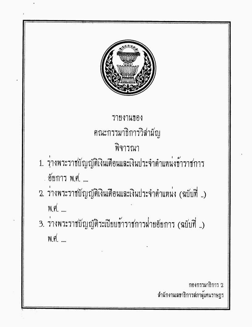 ชื่อเอกสาร :   ร่างพระราชบัญญัติเงินเดือนและเงินประจำตำแหน่งข้าราชการอัยการ พ.ศ....... ซึ่งคณะกรรมาธิการวิสามัญพิจารณาเสร็จแล้ว