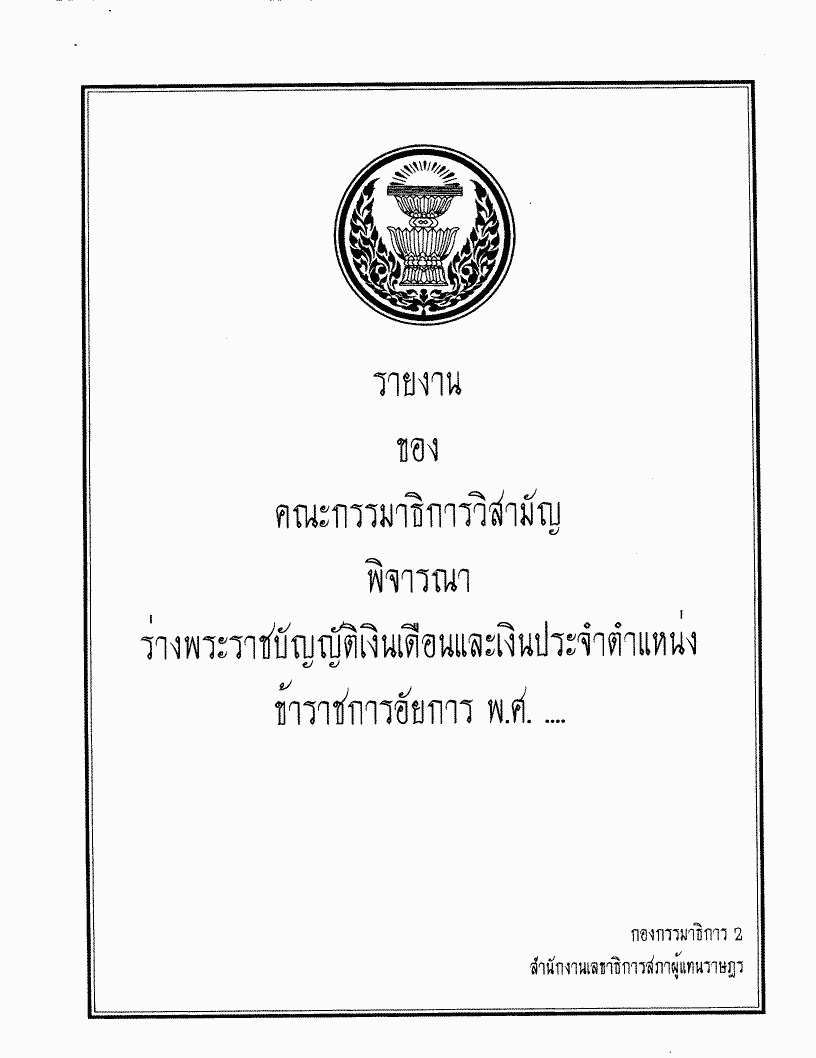 ชื่อเอกสาร :   ร่างพระราชบัญญัติเงินเดือนและเงินประจำตำแหน่งข้าราชการอัยการ พ.ศ....... ซึ่งคณะกรรมาธิการวิสามัญพิจารณาเสร็จแล้ว