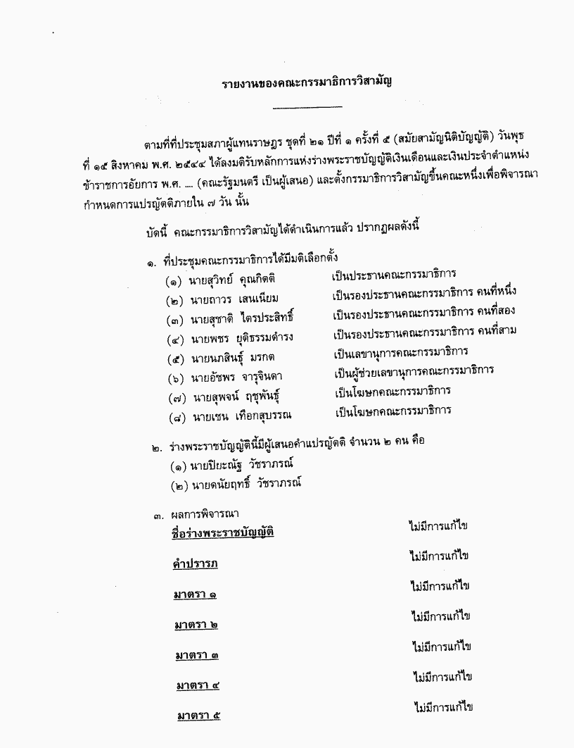 ชื่อเอกสาร :   ร่างพระราชบัญญัติเงินเดือนและเงินประจำตำแหน่งข้าราชการอัยการ พ.ศ....... ซึ่งคณะกรรมาธิการวิสามัญพิจารณาเสร็จแล้ว