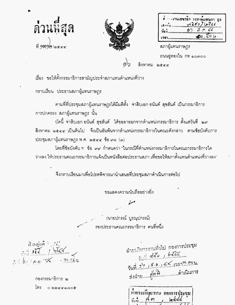 ขอให้ตั้งกรรมาธิการสามัญประจำสภาแทนตำแหน่งที่ว่าง |
