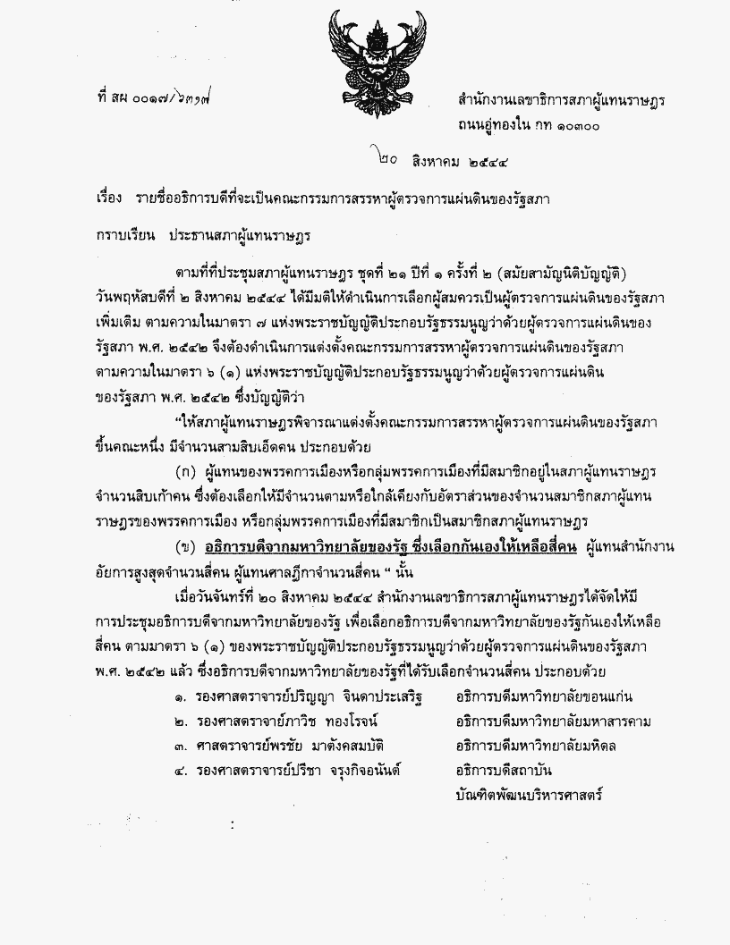 • รายชื่ออธิบดีที่จะเป็นคณะกรรมการสรรหาผู้ตรวจการแผ่นดินของรัฐสภา