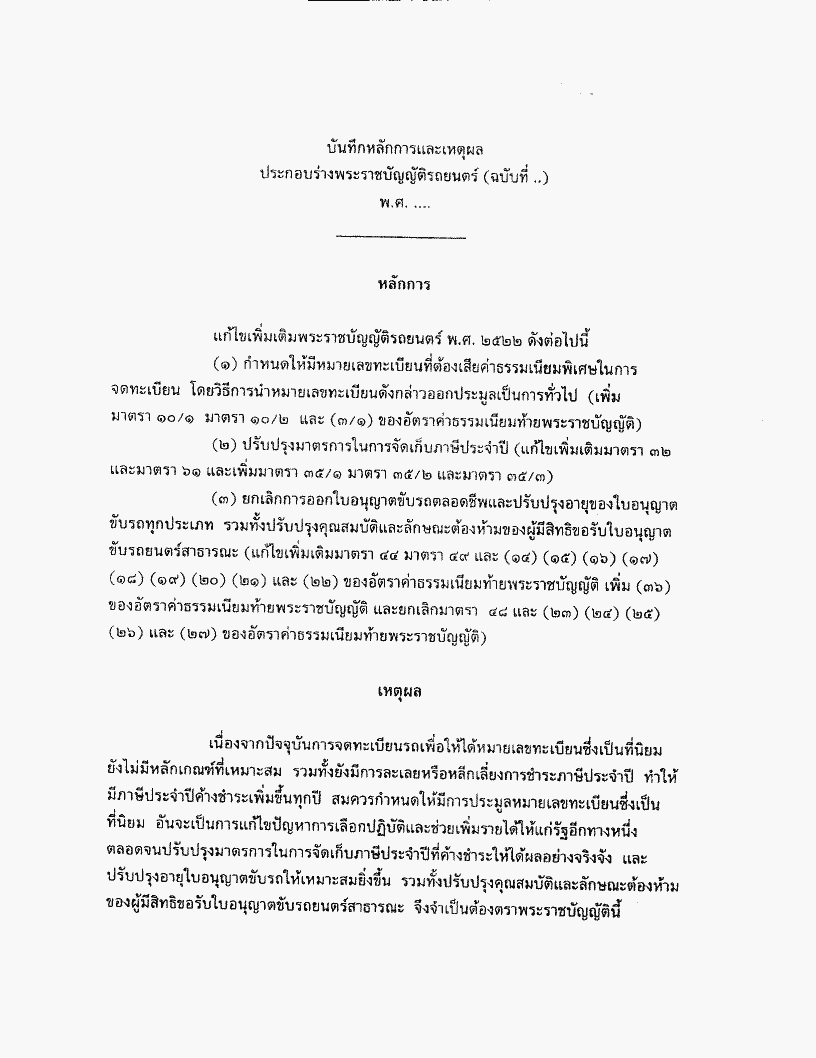 • ร่างพระราชบัญญัติรถยนตร์ (ฉบับที่..) พ.ศ.....และร่างพระราชบัญญัติการขนส่งทางบก (ฉบับที่..) พ.ศ.... รวม 2 ฉบับ